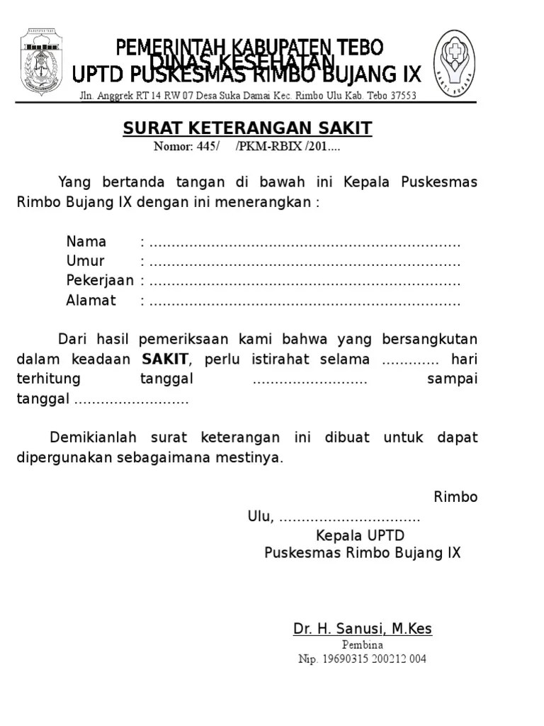 Contoh Surat Keterangan Sakit Dari Puskesmas : Contoh Surat Dokter Puskesmas Pdf